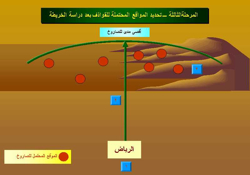 المرحلة الثالثة: تحديد المواقع المحتملة للقواذف بعد دراسة الخريطة