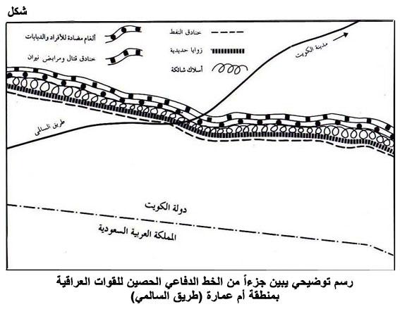 رسم توضيحي يبين جزءاً من الخط الدفاعي الحصين للقوات العراقية بأم عمارة (طريق السالمي).