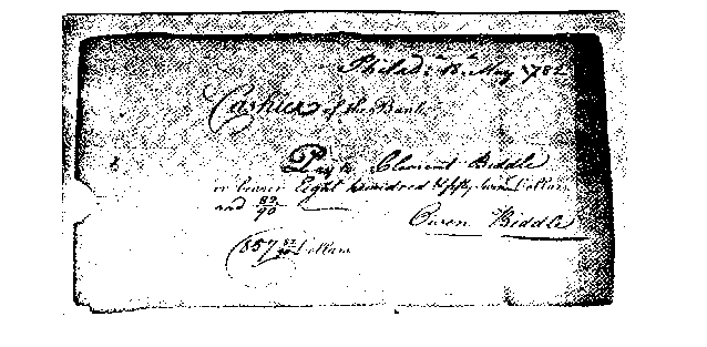أقدم صورة للشيك مسحوبة علي بنكNorth of America في 18 مايو سنة (1782)