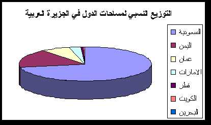 التوزيع النسبي لمساحات الدول في شبه الجزيرة العربية