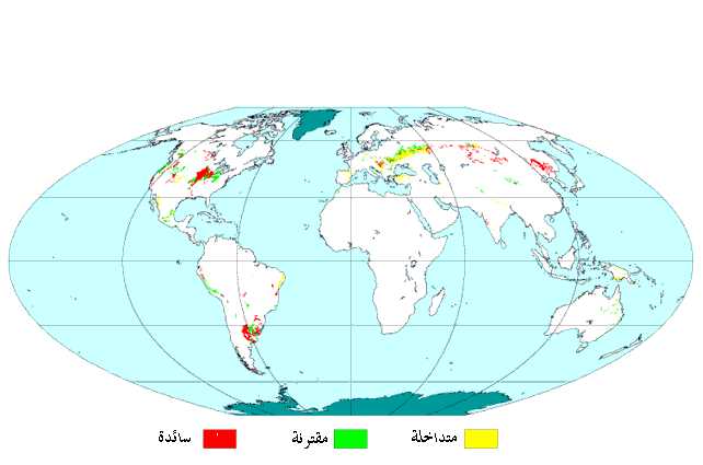 التوزيع الجغرافي لوحدة الترب الدكناء Phaeozems (منظمة الأغذية والزراعة FAO)