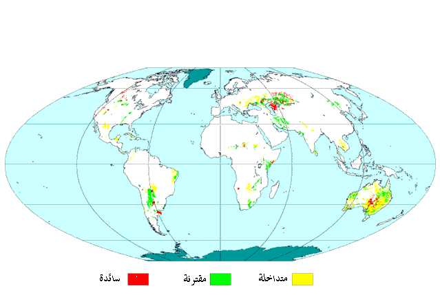 التوزيع الجغرافي لوحدة الترب الملحية القلوية Solonetz (منظمة الأغذية والزراعة FAO)
