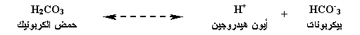 وحمض الكربونيك، بدوره، يتحلل إلى أيون الهيدروجين H+ والبيكربونات HCO-3: