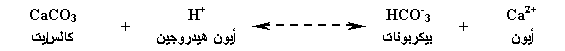 والتركيز العالي لأيون الهيدروجين في المحلول المائي، يقلل من درجة تشبع المحلول المائي، بالنسبة إلى معدن الكالسايت: