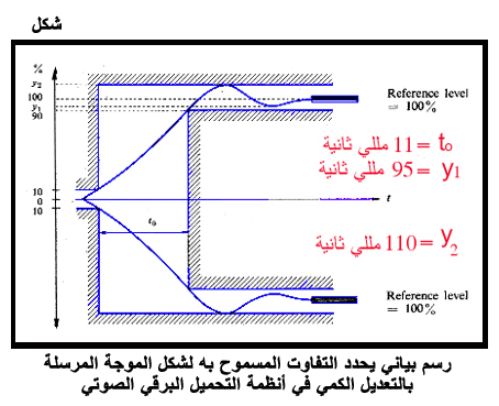 رسم بياني يحدد التفاوت المسموح به لشكل الموجة المرسلة بالتعديل الكمي في أنظمة التحميل البرقي الصوتي