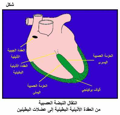 انتقال النبضة العصبية من العقدة الأذينية البطينية إلى عضلات البطينين