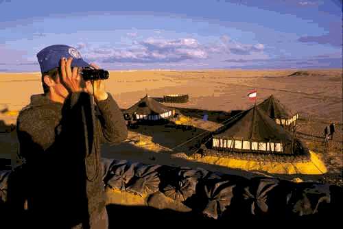 جندي من قوات طوارئ الأمم المتحدة الثانية في سيناء أثناء قيامه بمهام المراقبة