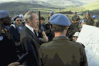 الأمين العام للأمم المتحدة آنذاك كورت فالدهايم أثناء زيارته لقوات الأمم المتحدة المؤقتة في جنوب لبنان عام 1978