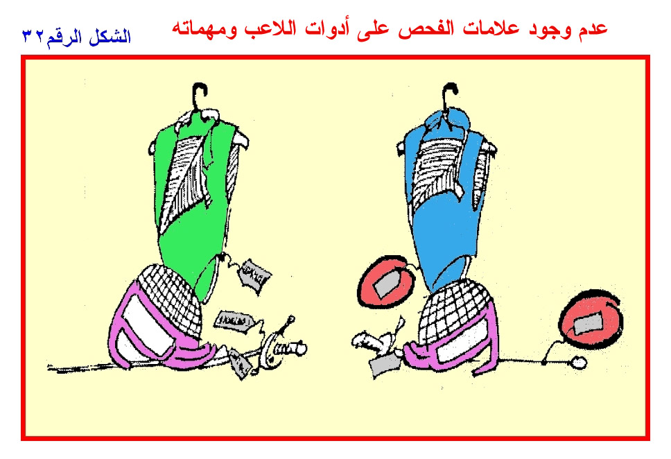 عدم وجود علامات الفحص على أدوات ومهمات اللاعب