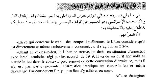 والمرسلتين من وزير الخارجية اللبناني إلى السفير اللبناني بالأمم المتحدة