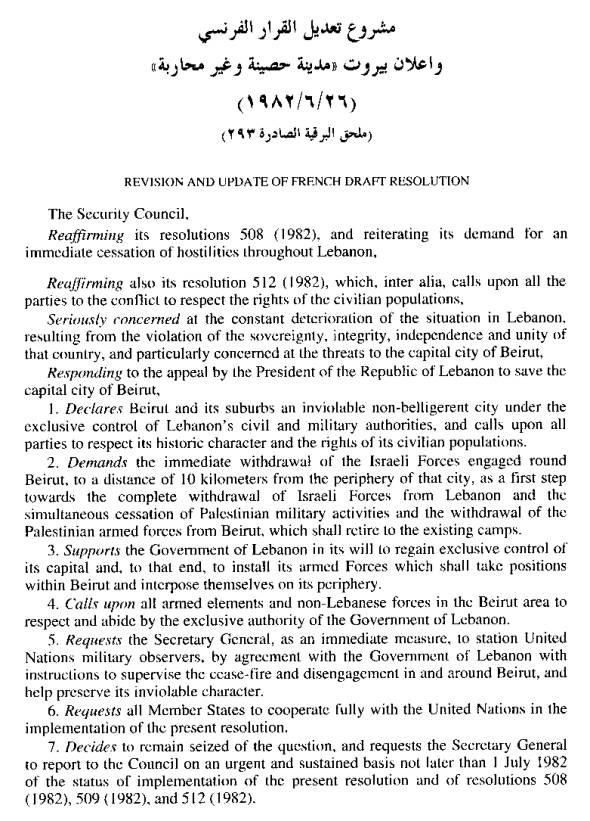 مشروع القرار الفرنسي في 26 يونيه 1982
