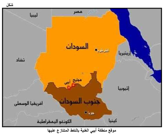 موقع منطقة إبيي الغنية بالنفط المتنازع عليها