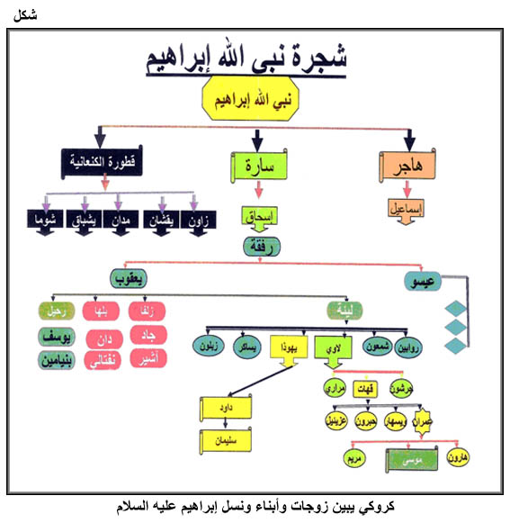 كروكي يبين زوجات وأبناء ونسل إبراهيم عليه السلام