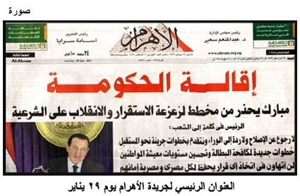 العنوان الرئيسي لجريدة الأهرام يوم 29 يناير