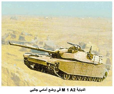الدبابة M 1 A2 في وضع أمامي جانبي
