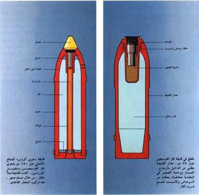 مقطع في قذيفة غاز الفوسيجين عيار 75 مم - مقطع لقذيفة جرين كروس للمدفع الألماني عيار 150 مم