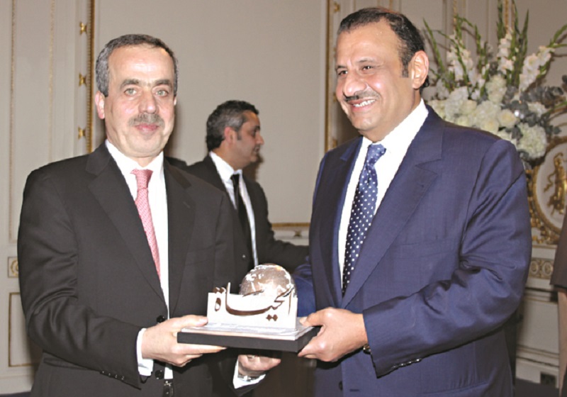 الأمير خالد يُسلم غسان شربل هدية تقديراً للعاملين