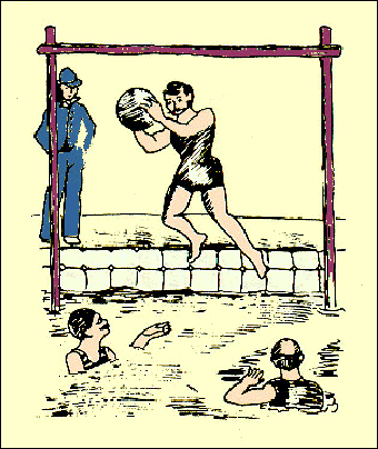 مرمى كرة الماء قديماً حيث كان المرمى فوق سطح الماء