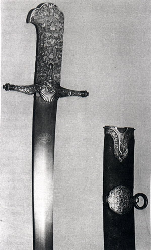 سيف مستقيم من سيوف السلطان سليم، ذو نصل حاد من الفولاذ يرجع إلى الربع الأول من القرن 16م. محفوظ بمتحف طوب كابي سرايي(استانبول)