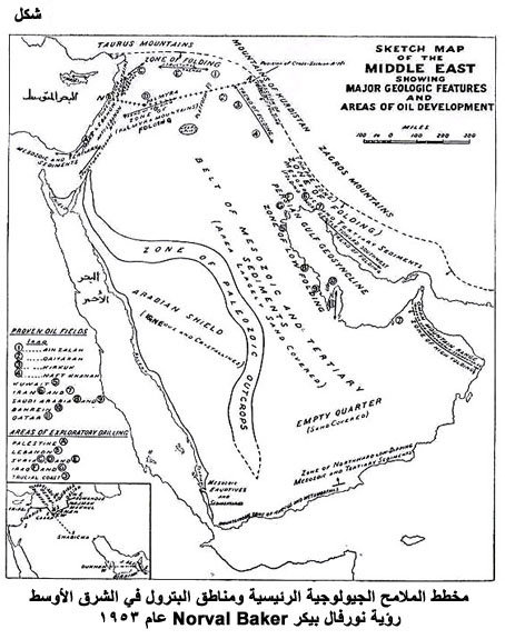 مخطط الملامح الجيولوجية الرئيسية ومناطق البترول في الشرق الأوسط
