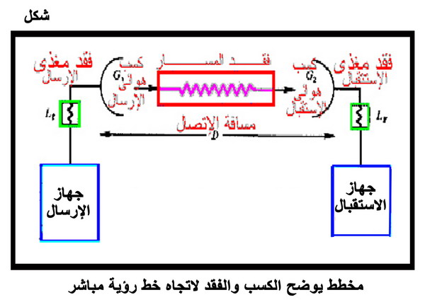 مخطط يوضح الكسب والفقد لاتجاه خط رؤية مباشر
