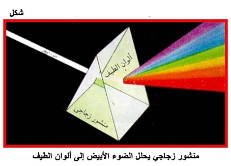 منشور زجاجي يحلل الضوء الأبيض إلى ألوان الطيف