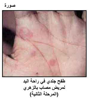 طفح جلدي في راحة اليد لمريض مصاب بالزهري (المرحلة الثانية)