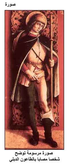 صورة مرسومة توضح شخصا مصابا بالطاعون الدبلي