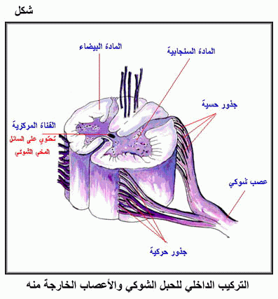 التركيب الداخلي للحبل الشوكي والأعصاب الخارجة منه
