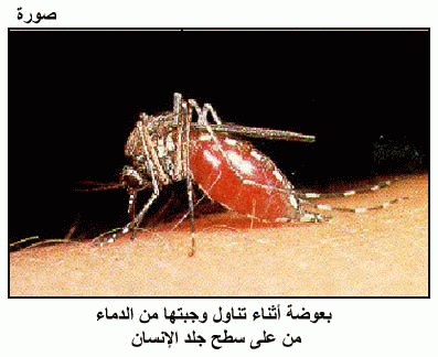بعوضة أثناء تناول وجبتها من الدماء من على سطح جلد الإنسان