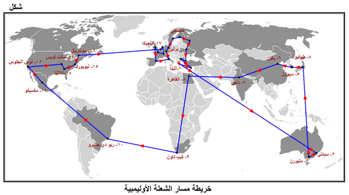 خريطة مسار الشعلة الأوليمبية
