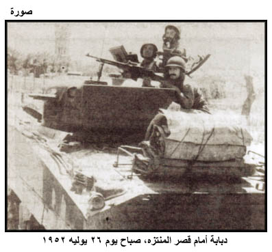 دبابة أمام قصر المنتزه صباح يوم 26 يوليه 1952