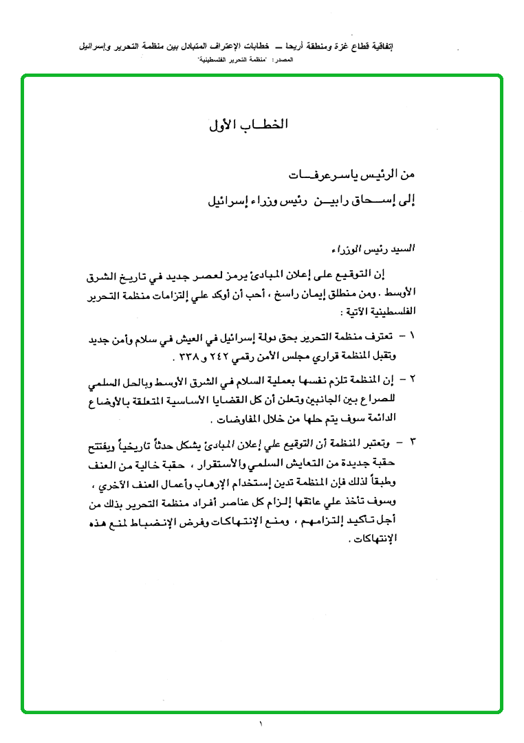 خطابات الاعتراف المتبادل بين منظمة التحرير الفلسطينية وإسرائيل