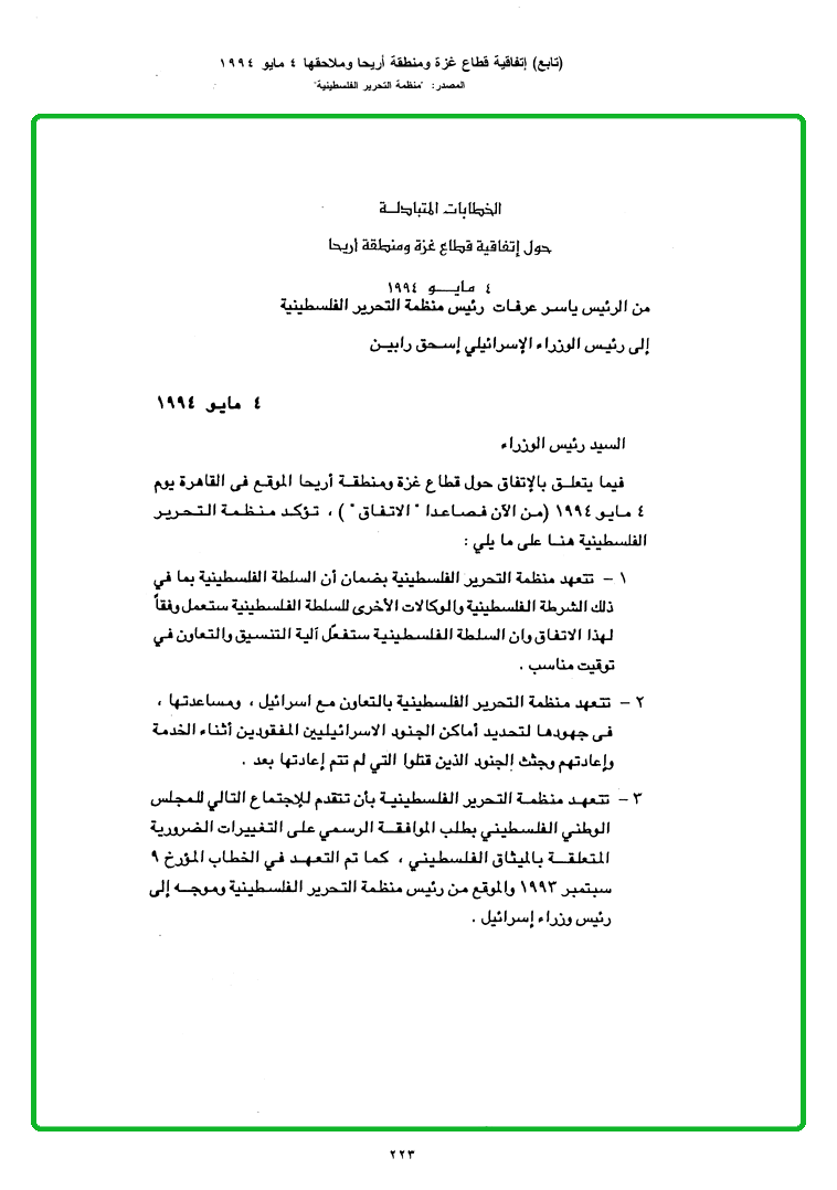 | Home Page / الوثائق / اتفاقيات السلام العربية - الإسرائيلية / فلسطين - إسرائيل / images | |||
