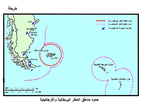 حدود مناطق الحظر البريطانية والأرجنتينية