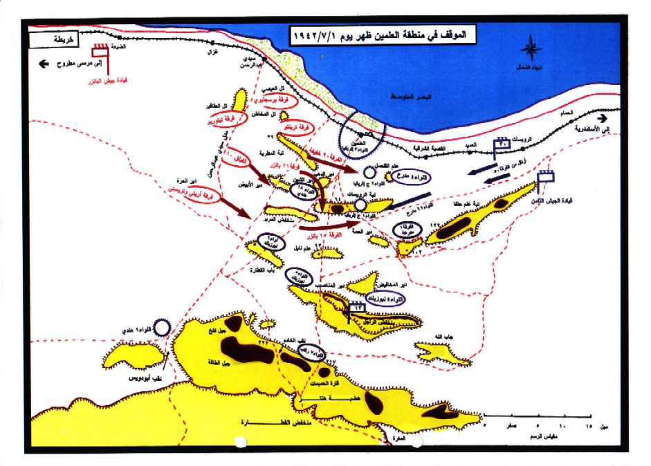 الموقف في منطقة العلمين ظهر يوم 1/7/1942