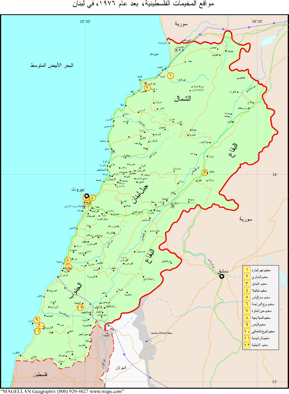 مواقع المخيمات الفلسطينية بعد عام 1976 في لبنان